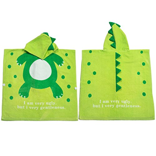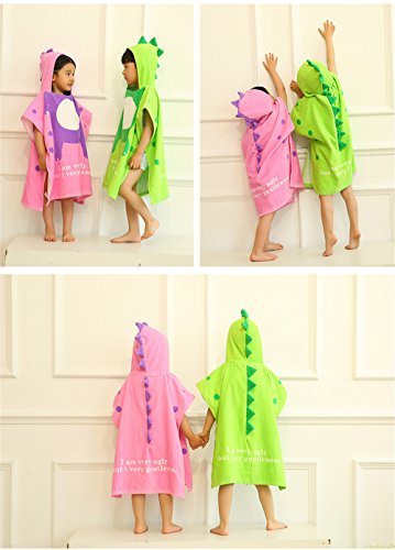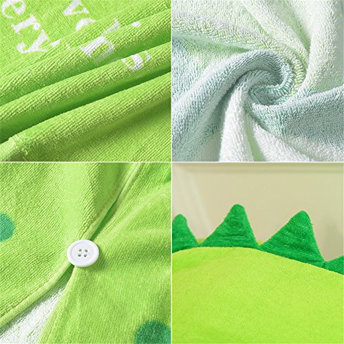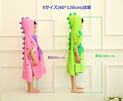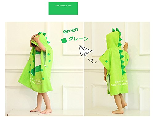 バスタオル バスローブ 子供 赤ちゃん ポンチョ 着ぐるみ ルームウェア 可愛い アニマル フード付き 綿 お風呂 温泉 ご出産祝い お誕生日 贈り物 プレゼント 恐竜 3色 (グレーン, L(65 * 150cm))
