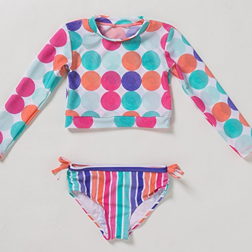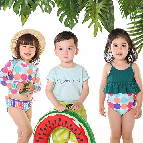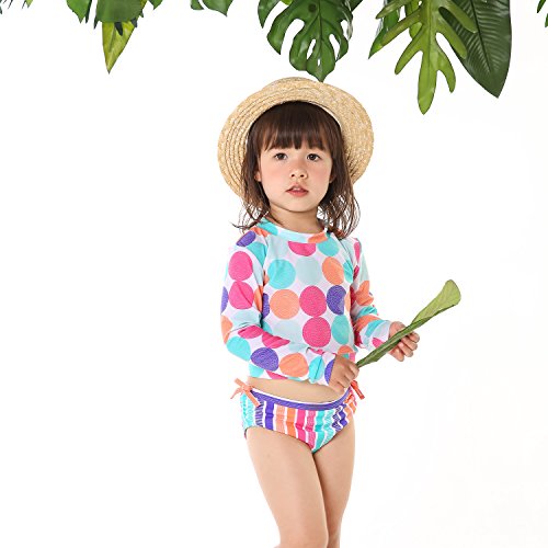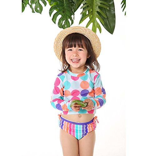BABY ONE™ (ベビーワン)キッズ水着 長袖 ショートパンツ2点セット 四色バブル柄 夏新作 女の子 可愛い 速乾 紫外線カット (100#)