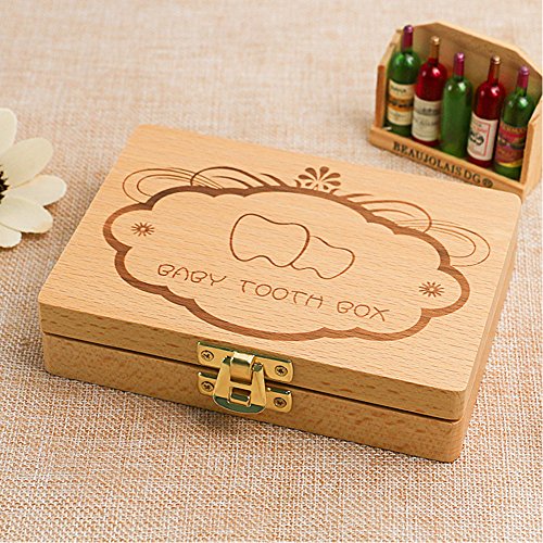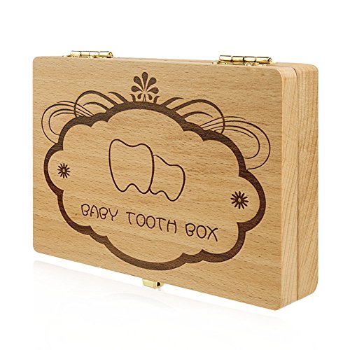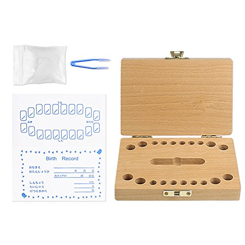OFUN 乳歯ケース 乳歯ボックス 乳歯入れケース 赤ちゃん用 日シール付き 乾燥用綿付き 木製 出産お祝い