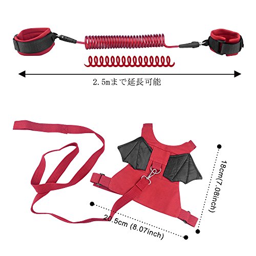 OFUN 迷子防止ハーネス 迷子防止紐 2点セット セーフティーハーネス 迷子リード 迷子防止縄 柔軟性 超軽量 手つなぎ補助帯 子供用ハーネス お出かけ用品 安全対策 悪魔(レッド)