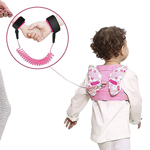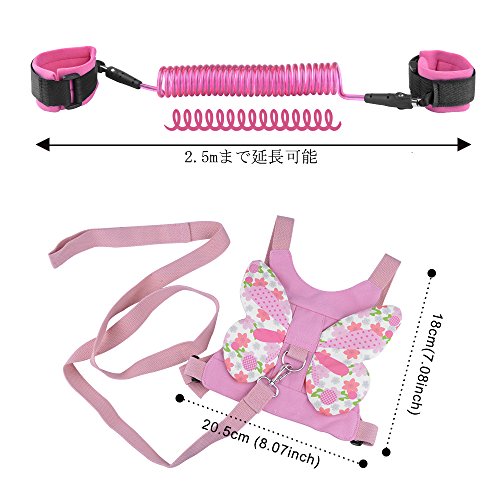 - 【二つの着用方式】迷子防止紐PUのチューブの中は頑丈なスチール製なので、切れにくい安心です。ピンクのバタフライの迷子防止ハーネスは見た目もかわいく、サイズ調整できるので上着の上からも着用できます