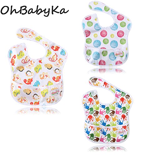 OHBABYKAスタイ よだれかけ スーパービブ お食事エプロン 防水 袖なし 保育園 お食事用防水ビブ 女の子 男の子 ベビーロンパース3点セット (SZY050613)