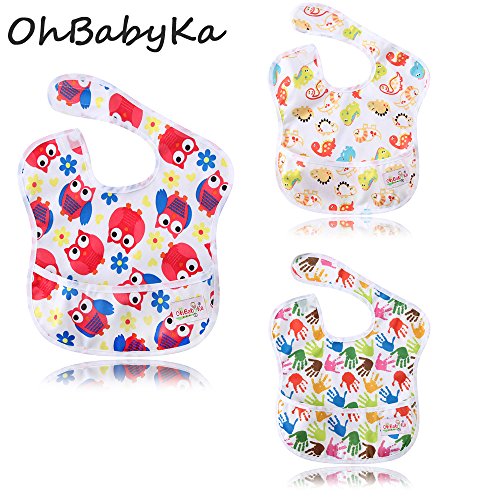 OHBABYKAスタイ よだれかけ スーパービブ お食事エプロン 防水 袖なし 保育園 お食事用防水ビブ 女の子 男の子 ベビーロンパース3点セット (SZY060713)