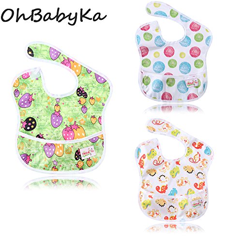 OHBABYKAスタイ よだれかけ スーパービブ お食事エプロン 防水 袖なし 保育園 お食事用防水ビブ 女の子 男の子 ベビーロンパース3点セット (SZY050611)