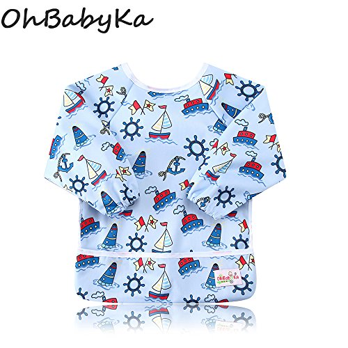 OHBABYKAお食事エプロン 赤ちゃん 防水 乳幼児 ベビー 子供 長袖タイプ 粘土遊び お絵かき 女の子 男の子 スタイ よだれかけ ビブ よだれカバー スモック (ZY18)