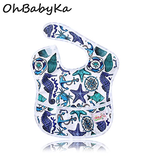 OHBABYKAベビー用エプロン 保育園 給食 ポケット付き アニマル 動物 お食事エプロン 赤ちゃん用エプロン 離乳食エプロン よだれかけ スタイ 棘皮動物 ふくろう きりん しまうま カエル 亀 ドット (SZY08)