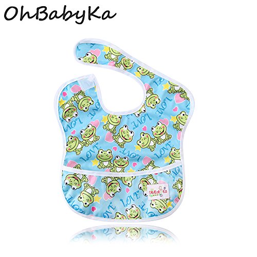 OHBABYKAベビー用エプロン 保育園 給食 ポケット付き アニマル 動物 お食事エプロン 赤ちゃん用エプロン 離乳食エプロン よだれかけ スタイ 棘皮動物 ふくろう きりん しまうま カエル 亀 ドット (SZY03)