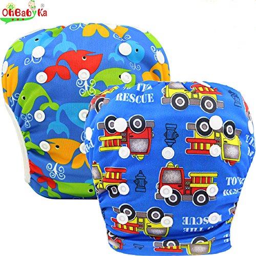 OHBABYKAブランド ベビー 水着 スイムパンツ 赤ちゃん 水遊び用おむつ 男の子女の子新生児子供用キッズサイズ大人気可愛い洗え経済的調整可能 防水ウォータープルーフ生地 安くて再利用可能 おすすめ2枚セット