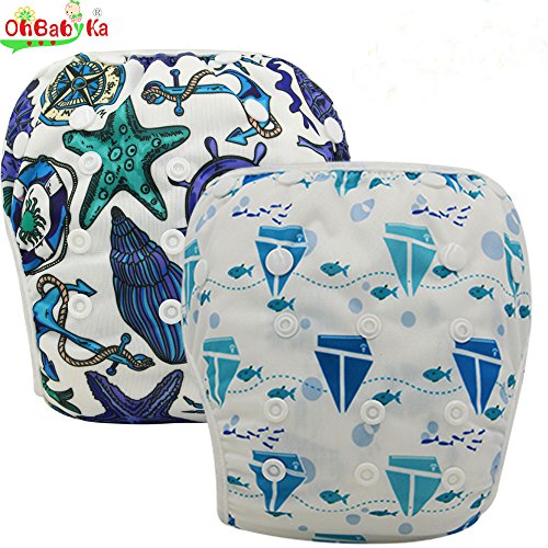 OHBABYKAブランド ベビー 水着 スイムパンツ 赤ちゃん 水遊び用おむつ 男の子女の子新生児子供用キッズサイズ大人気可愛い洗え経済的調整可能 防水ウォータープルーフ生地 安くて再利用可能 おすすめ2枚セット
