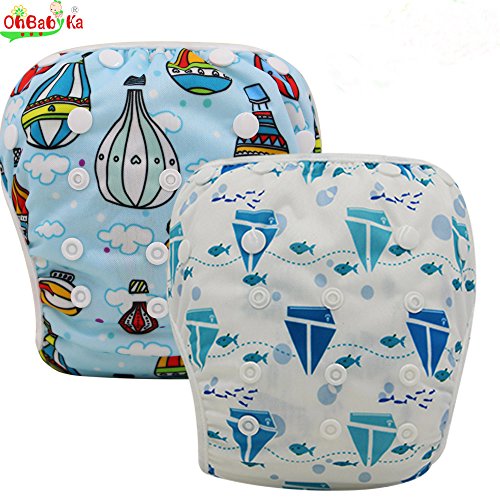 OHBABYKAブランド ベビー 水着 スイムパンツ 赤ちゃん 水遊び用おむつ 男の子女の子新生児子供用キッズサイズ大人気可愛い洗え経済的調整可能 防水ウォータープルーフ生地 安くて再利用可能 おすすめ2枚セット