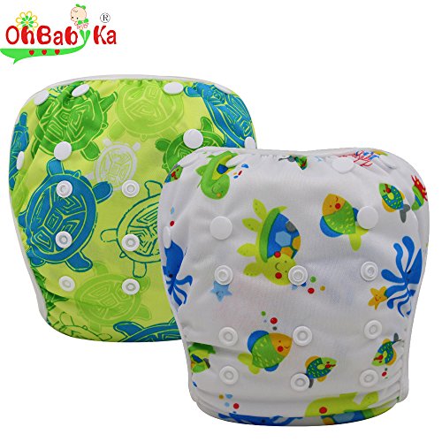 OHBABYKAブランド ベビー 水着 スイムパンツ 赤ちゃん 水遊び用おむつ 男の子女の子新生児子供用キッズサイズ大人気可愛い洗え経済的調整可能 防水ウォータープルーフ生地 安くて再利用可能 おすすめ2枚セット (YK1613)
