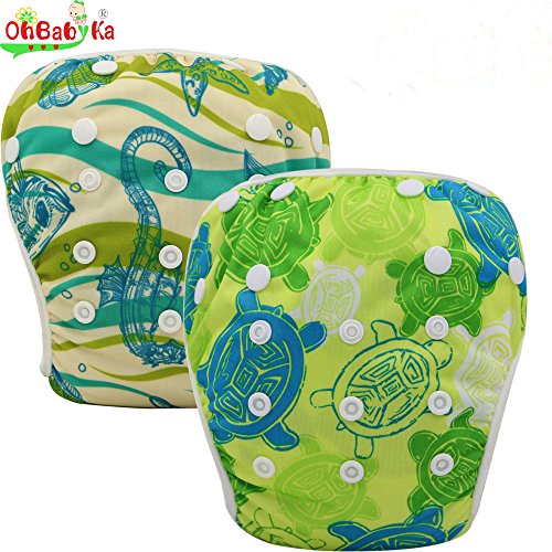 OHBABYKAブランド ベビー 水着 スイムパンツ 赤ちゃん 水遊び用おむつ 男の子女の子新生児子供用キッズサイズ大人気可愛い洗え経済的調整可能 防水ウォータープルーフ生地 安くて再利用可能 おすすめ2枚セット