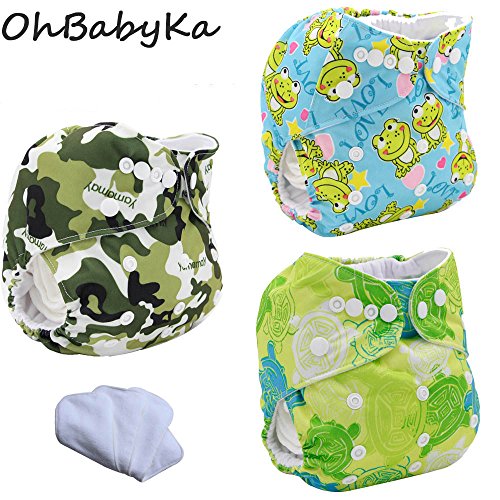 Ohbabyka3点セット おむつカバー+おむつライナー 布おむつ ベビー 布オムツ おむつ 新生児用 新生児用品 サイズ調節可 洗濯可能 漏れしにくい パンツ フリーサイズ 通気性良い 保育園 入園準備 女の子 男の子 (K0946OB006)