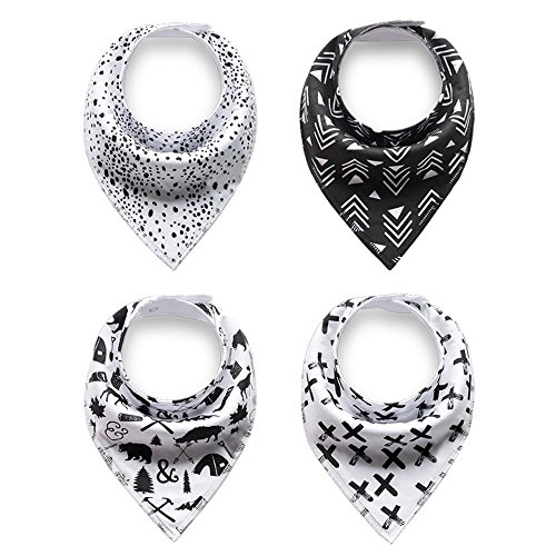 ROKE ベビー スタイ ビブ 柔らかい 4枚 セット コットン 綿100% モノトーン よだれかけ ビブ パターン柄 ベビー 可愛い おしゃれ