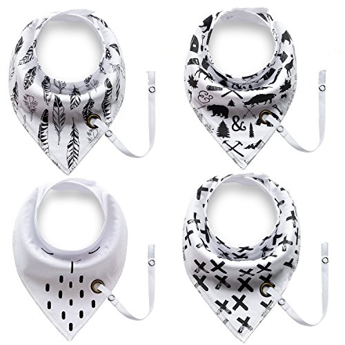 ROKE ベビー&キッズ用 ビブ スタイ 赤ちゃん用 よだれかけ 子供 小物 コットン 柔らかい 三角調整可能おしゃぶりホルダー付き 4枚セット ギフト包装