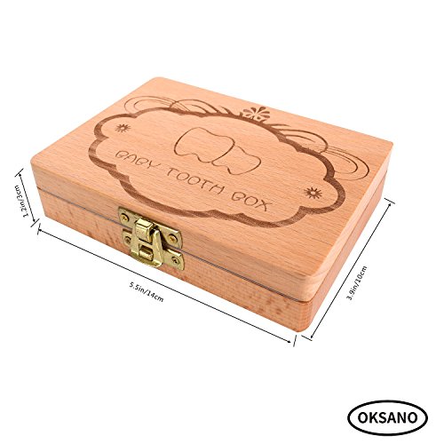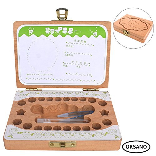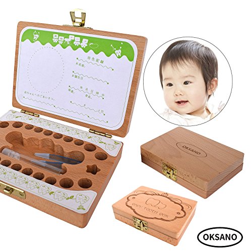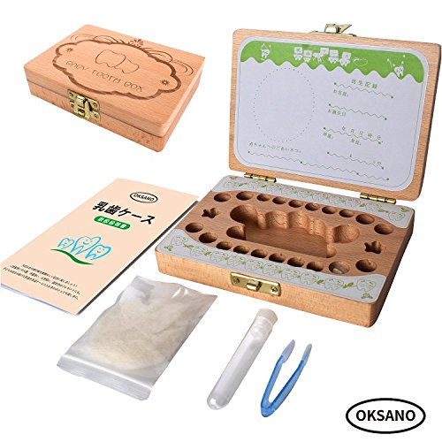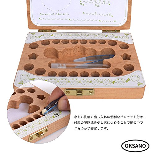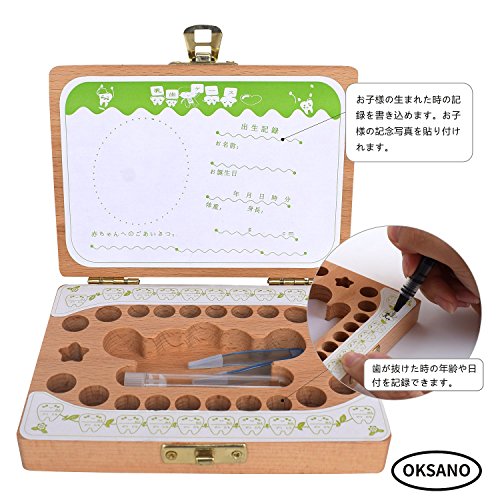 【OKSANO】乳歯ケース 木製 プレミアムボックス 赤ちゃん用 記念 トゥースボックス 乳歯ボックス 写真入れ可能 名前と抜けた日シール付き 日本語取扱説明書付き