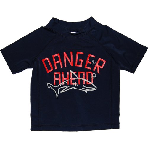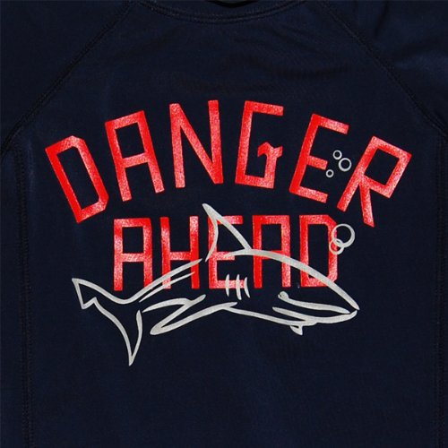オールドネイビー(OLD NAVY)ナイトネイビーDANGER AHEADシャークプリントラッシュガード水着 6-12months 6ヶ月-12ヶ月用 70cm-80cm 紺サメスイムウェア,,日焼け防止UPF50+,【並行輸入】