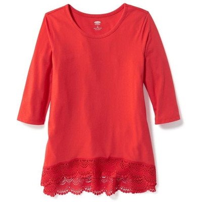 オールドネイビー OLD NAVY/ クロシェットヘムスクープネックティ レッドアラウド トップス長袖Tシャツ XS【並行輸入】