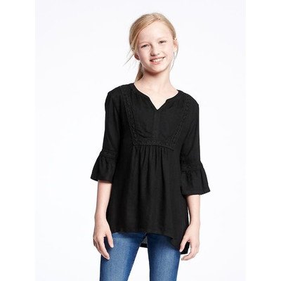 オールドネイビー OLD NAVY/ クロシェットトリムボホチュニック ブラック トップス長袖シャツ S【並行輸入】