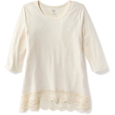 オールドネイビー OLD NAVY/ クロシェットヘムスクープネックティ クリームデラクリーム トップス長袖Tシャツ L【並行輸入】