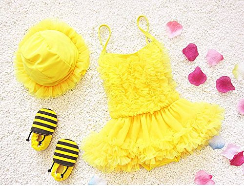 (オルル) OLULU キッズ 水着 女の子 ワンピース ビキニ 半袖 スイミング つなぎビキニ 110 130 100 120 80 イエロー