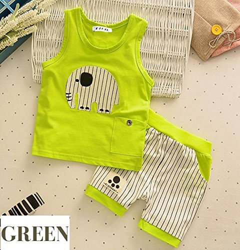 - ストライプ柄のゾウモチーフがおしゃれなタンクトップとショートパンツのお得な2点セット。