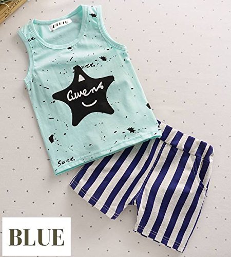 オルル (OLULU)キッズ ベビー 上下セット セットアップ タンクトップ ショートパンツ 2点セット 夏服 ベビー キッズ 100 ブルー