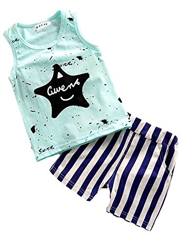 - 星モチーフとストライプ柄がおしゃれなタンクトップとショートパンツの2点セット。