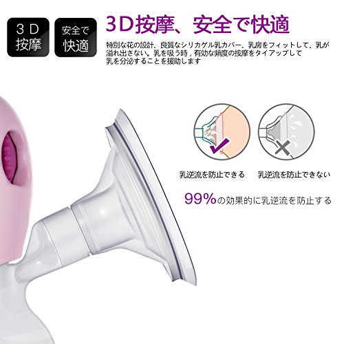 - 3D按摩、安全で快適:特別な花の設計、良質なシリカゲル乳カバー、乳房をフィットして、乳が溢れ出さない。乳を吸う時,有効な頻度の按摩をタイアップして、乳を分泌することを援助します。