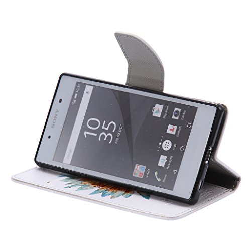OMATENTI Sony Xperia Z5 ケース, 高級PUレザー ケース 手帳型 保護ケース カード収納ホルダー付き 横置きスタンド機能付き マグネット式 スマホケース [強化ガラスフィルムを無料で贈ります] [無期限生涯補償付き] (P7 ホワイト)