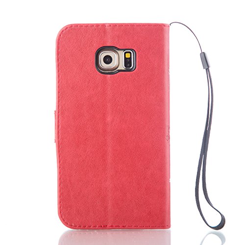 OMATENTI Galaxy S6 Edge Plus ケース, Smasung Galaxy S6 Edge Plus 高級PUレザー ケース 手帳型 保護ケース カード収納ホルダー付き 横置きスタンド機能付き マグネット式 スマホケース [全10色] (レッド)