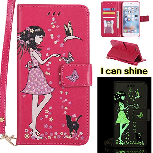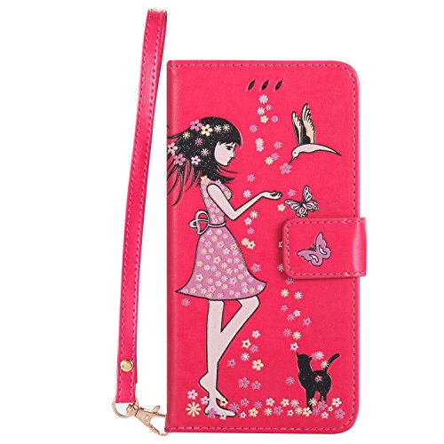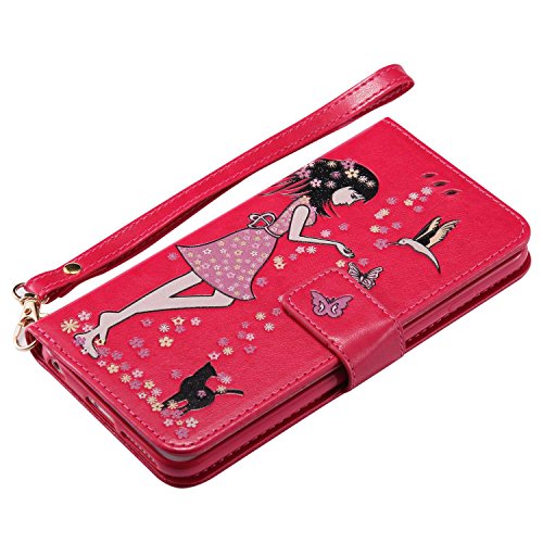 iPhone 6 Plus/iPhone 6s Plus 手帳型ケース OMATENTI PUレザー マグネット式 財布型 ケース iPhone 6 Plus/iPhone 6s Plus 対応 カードポケット付き スタンド機能付き 携帯電話カバー (8-ホトピンク)