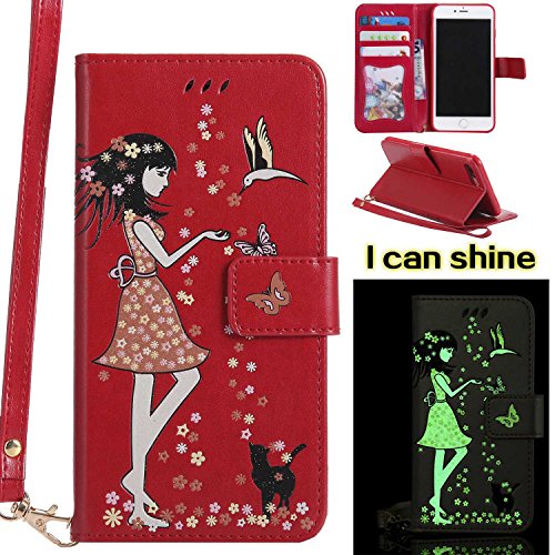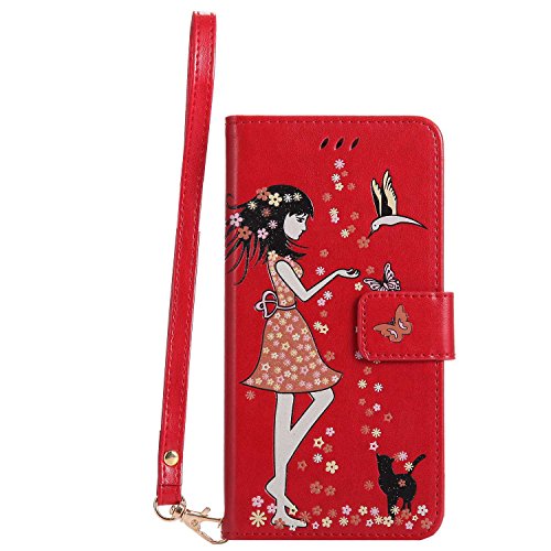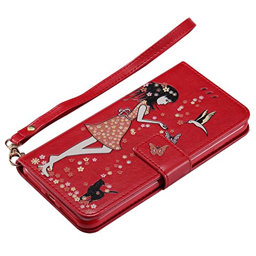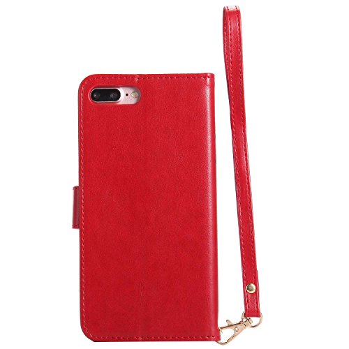 iPhone 7 Plus/iPhone 8 Plus 手帳型ケース OMATENTI PUレザー マグネット式 財布型 ケース iPhone 7 Plus/iPhone 8 Plus 対応 カードポケット付き スタンド機能付き 携帯電話カバー (5-レッド)