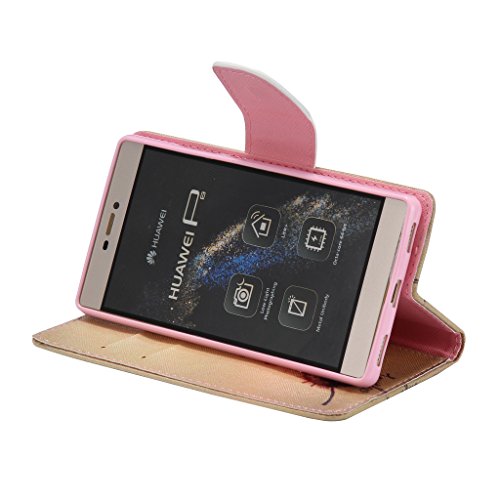Huawei P8 ケース [強化ガラスフィルムを無料で贈ります], OMATENTI Huawei P8 高級PUレザー ケース 手帳型 保護ケース カード収納ホルダー付き 横置きスタンド機能付き マグネット式 スマホケース (P15, ブラウン)