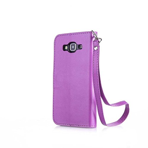 Galaxy J5 手帳型 OMATENTI 本革 カバー カードポケット スタンド機能 マグネット式 アイフォン Samsung Galaxy J5 用 財布型 カバー [強化ガラスフィルムを無料で贈ります] [全10色] (パープル P2)