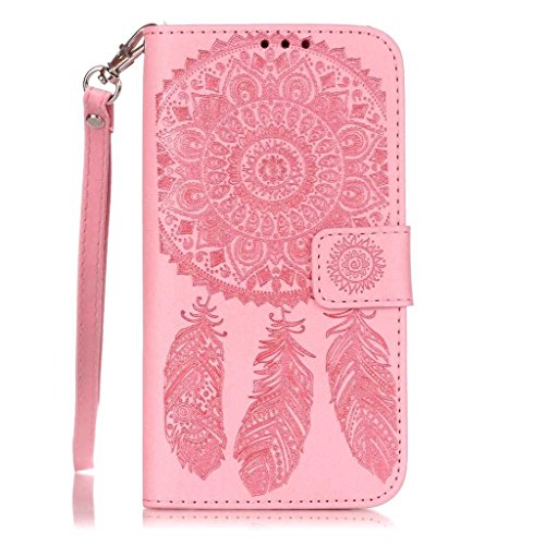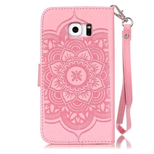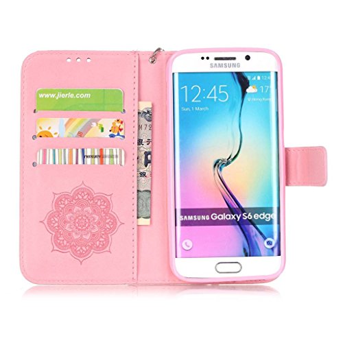 OMATENTI Galaxy S6 Edge ケース (強化ガラスフィルムを無料で贈ります), Samsung Galaxy S6 Edge 高級PUレザー ケース 手帳型 保護ケース カード収納ホルダー付き 横置きスタンド機能付き マグネット式 スマホケース [全8色] (ピンク P2)