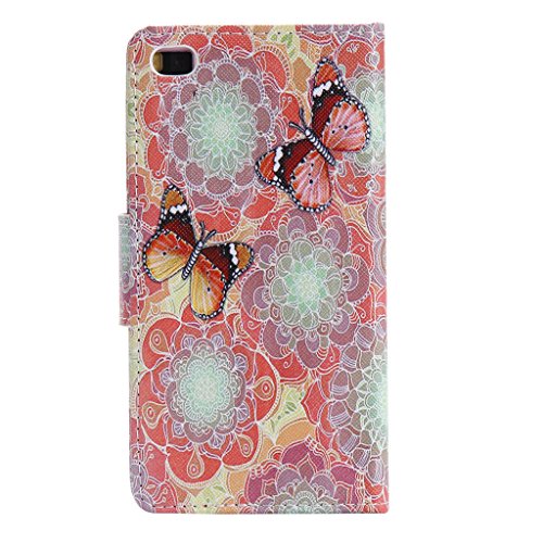 Huawei P8 ケース [強化ガラスフィルムを無料で贈ります], OMATENTI Huawei P8 高級PUレザー ケース 手帳型 保護ケース カード収納ホルダー付き 横置きスタンド機能付き マグネット式 スマホケース (P13, マルチカラー)