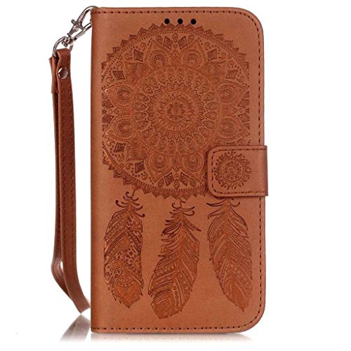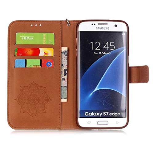 OMATENTI Galaxy S7 Edge ケース (強化ガラスフィルムを無料で贈ります), Samsung Galaxy S7 Edge 高級PUレザー ケース 手帳型 保護ケース カード収納ホルダー付き 横置きスタンド機能付き マグネット式 スマホケース [全8色] (ブラウン P6)