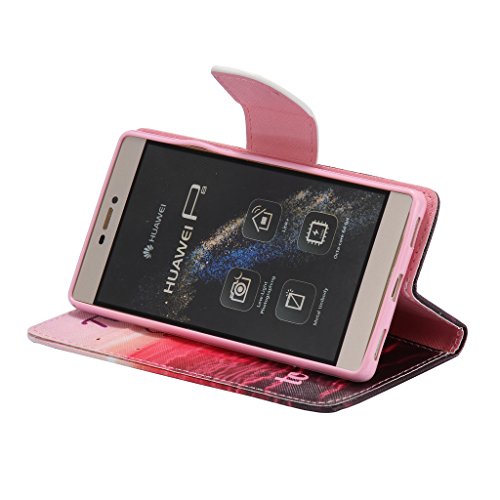 Huawei P8 ケース [強化ガラスフィルムを無料で贈ります], OMATENTI Huawei P8 高級PUレザー ケース 手帳型 保護ケース カード収納ホルダー付き 横置きスタンド機能付き マグネット式 スマホケース (P9, レッド)
