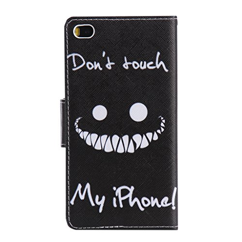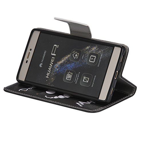 Huawei P8 ケース [強化ガラスフィルムを無料で贈ります], OMATENTI Huawei P8 高級PUレザー ケース 手帳型 保護ケース カード収納ホルダー付き 横置きスタンド機能付き マグネット式 スマホケース (P6, ブラック)