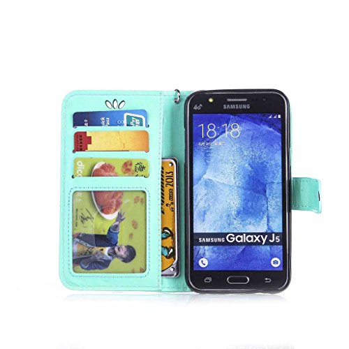 Galaxy J5 手帳型 OMATENTI 本革 カバー カードポケット スタンド機能 マグネット式 アイフォン Samsung Galaxy J5 用 財布型 カバー [強化ガラスフィルムを無料で贈ります] [全10色] (グリーン)