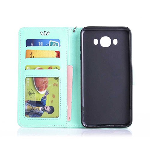 Galaxy J7 2016 (SM-J710FN) 手帳型 OMATENTI 本革 カバー カードポケット スタンド機能 マグネット式 アイフォン Samsung Galaxy J7 2016 (SM-J710FN) 用 財布型 カバー [強化ガラスフィルムを無料で贈ります] [全10色] (グリーン)