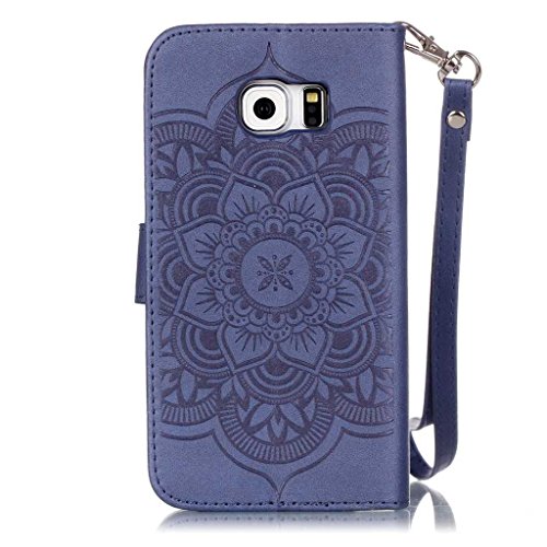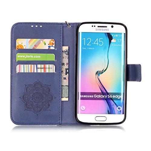 OMATENTI Galaxy S6 Edge ケース (強化ガラスフィルムを無料で贈ります), Samsung Galaxy S6 Edge 高級PUレザー ケース 手帳型 保護ケース カード収納ホルダー付き 横置きスタンド機能付き マグネット式 スマホケース [全8色] (ブルー P7)