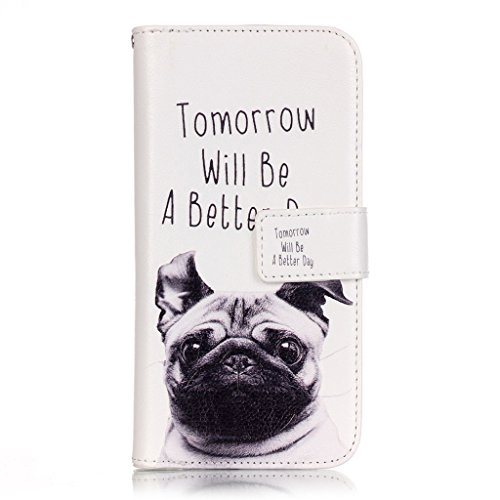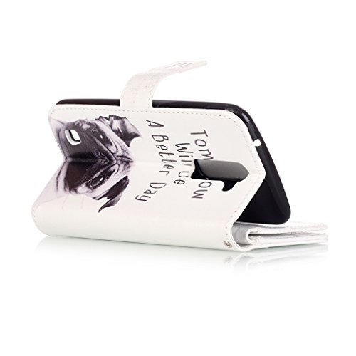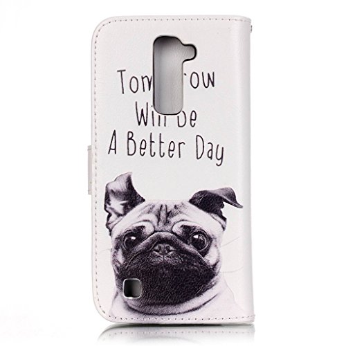 OMATENTI LG K8 用 PUレザー手帳型ケース [強化ガラスフィルムを無料で贈ります] [無期限生涯補償付き] 耐摩擦 耐汚れ 全面保護 フリップ 人気 横開き スマートフォン カバー (犬)