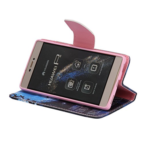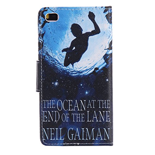 Huawei P8 ケース [強化ガラスフィルムを無料で贈ります], OMATENTI Huawei P8 高級PUレザー ケース 手帳型 保護ケース カード収納ホルダー付き 横置きスタンド機能付き マグネット式 スマホケース (P7, ブルー)