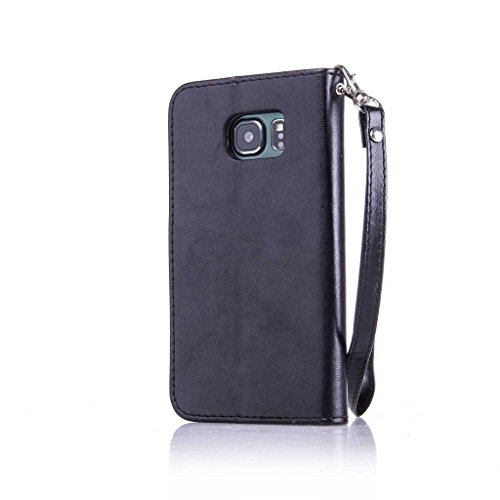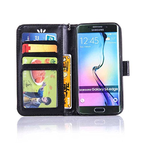Galaxy S6 Edge 手帳型 OMATENTI 本革 カバー カードポケット スタンド機能 マグネット式 アイフォン Samsung Galaxy S6 Edge 用 財布型 カバー [強化ガラスフィルムを無料で贈ります] [全10色] (ブラック)