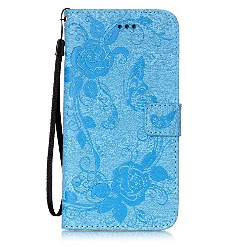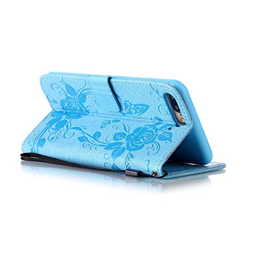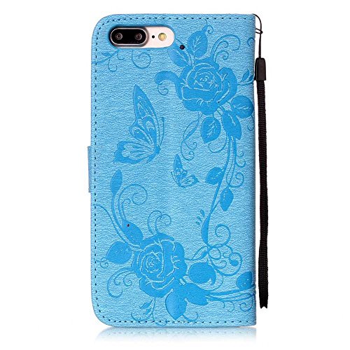 OMATENTI iPhone 7 Plus ケース (強化ガラスフィルムを無料で贈ります), Apple iPhone7 Plus 高級PUレザー ケース 手帳型 保護ケース カード収納ホルダー付き 横置きスタンド機能付き マグネット式 スマホケース [全8色] (ブルー #5)