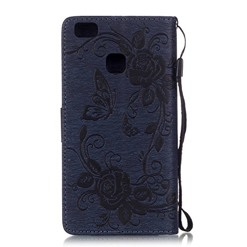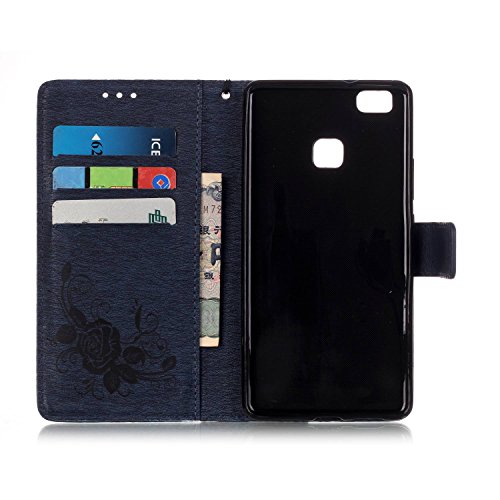 OMATENTI Huawei P9 Lite ケース, Huawei P9 Lite 高級PUレザー ケース 手帳型 保護ケース カード収納ホルダー付き 横置きスタンド機能付き マグネット式 スマホケース [全8色] (ブルー #7)