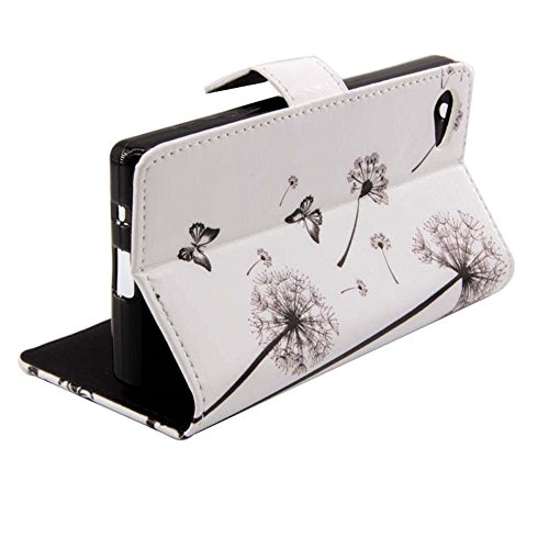 OMATENTI Sony Xperia Z5 Compact (Mini) ケース Sony Xperia Z5 Compact (Mini) PUレザーケース 手帳型 スマートフォンケース スマホケース スタンド機能付き 耐衝撃 保護カバー [無期限生涯補償付き] (タンポポ, ホワイト#1)