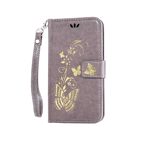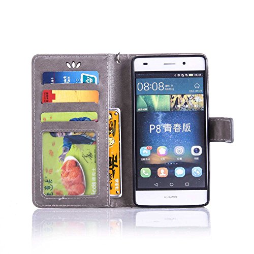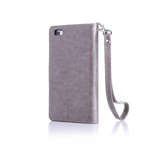 Huawei P8 Lite 手帳型 OMATENTI 本革 カバー カードポケット スタンド機能 マグネット式 アイフォン Huawei P8 Lite 用 財布型 カバー [全10色] (グレー)